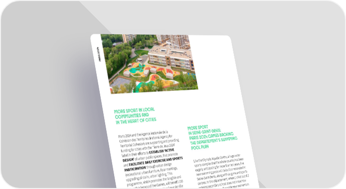 4 02 PARIS 2 © Studio MDF/Shutterstock.com MORE SPORT IN LOCAL COMMUNITIES AND IN THE HEART OF CITIES Paris 2024 and the Agence Nationale de la MORE SPORT Cohésion des Territoires (National Agency for IN SEINE-SAINT-DENIS: Territorial Cohesion) are supporting and providing PARIS 2024 GAMES BACKING funding for cities with the "Terre de Jeux 2024" THE DEPARTEMENT’S SWIMMING label in their efforts to ESTABLISH ‘ACTIVE POOL PLAN DESIGN’ of urban public spaces, that promote and FACILITATE DAILY EXERCISE AND SPORTS PARTICIPATION through urban design Like the Olympic Aquatic Centre, a huge water (recreational urban furniture, floor markings, sports complex that the whole country has been upgrading of stairs, urban lighting. This eagerly anticipating for more than ten years, five programme, which promotes the tangible and new swimming pools will be built or renovated in intangible legacy of the Games, will benefit 100 Seine-Saint-Denis, along with six gyms and sports towns and cities from the Action Cœur de Ville centres. In this département, where 1 child out of 2 network that have also signed up to the "Terre de entering secondary school does not know how Jeux 2024" initiative. to swim, the Games will provide new momentum for swimming education. The mobilised public funding (the State, the City of Paris, the Ile-de-France region, the Greater Paris metropolitan authority, the Département of Seine-Saint-Denis, the Plaine Commune) will contribute to the installation of new swimming pools that will be created or renovated. VenhoevenCS - Ateliers234 - Proloog S E M A N G E P 4 O 2 0 S 2 I R A P 35 Paris2024
