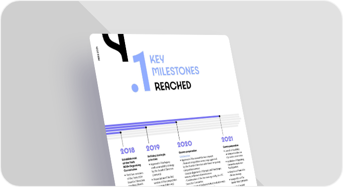 4 02 PARIS 2 4 KEY MILESTONES .1REACHED 2018 2019 2020 2021 Establishment Defining strategic Games preparation Games preparation of the Paris priorities Celebration Launch of feasibility 2024 Organising Appr oval of the legacy Approval of the revised Games concept: and impact studies on Commission and sustainability strategy - Revised competition venue map approved city-centre ceremonies First two sessions by the Board of Directors by the Board of Directors with fewer temporary Installation of Organising of the Paris 2024 (January) competition venues Committee in its new Board of Directors Presentation of the first - Greater alignment of Olympic and Paralympic headquarters meeting (March version of the competition venues, with more shared venues Adoption of Paris 2024 and July) and venue map (February) - Confirmation of the four new sports by the IOC climate strategy initial review Launch of the ESS 2024 Executive Committee of the project - Appointment of stadiums to host football events Inauguration of the First meeting and Entreprises 2024 Safeguarding of Games operations: Grand Palais Ephémère of the Athletes’ programmes for local - Approval of the accommodation plan with Launch of second Commission (April) economic stakeholders hotel sector representatives (45,430 rooms Impact 2024 call (April) required during the Games) for projects and Paralympic Games Launch of the "Terre de - Signature of protocol between the State and first Impact 2024 orientation seminar Jeux 2024" label (June) Paris 2024 concerning safety and security of the international call with the IPC (April) Opening of the Vaires-sur- Games (scope and responsibilities) for projects Publication of the Marne Nautical Stadium, - Launch of working groups with public Start of building work Paris 2024 Social the first newly built Olympic authorities and all stakeholders concerning for more than half Charter (June) facility (June) the transport plan in order to provide optimal of SOLIDEO projects, Announcement of Unveiling of the new Paris transport services including the Athletes’ the first national 2024 emblem (October) Participation Village, the Olympic partner: Groupe Launch of the Paris 2024 Club (July) Aquatics Centre, BPCE (September) IPC approval of the Announcement of two new national partners: the Porte de la Paralympic competition Le Coq Sportif (March), Orange (October) Chapelle Arena and venues (November) Announcement of the first group of Games the Marseille marina Start of deconstruction Preparation Centres Announcement of S work at the Athletes’ Village Legacy and Sustainability new national partners: E (November) Launch of first Impact 2024 call for projects (August) DXC Technology, M A Announcement of two Adoption of responsible procurement strategy Cisco, PwC, Sanofi, N G new national partners: by the Board of Directors (September) Decathlon, Sodexo, E P EDF (November), FDJ Launch of the incubator with the Agence Française Accor, and Optic 2000 4 O (December) de Développement (French Development Agency – AFD) 2 0 Presentation of the main Infrastructure S 2 I elements of the Paralympic Start of Olympic Aquatic Centre deconstruction R A legacy strategy work (April) P 41