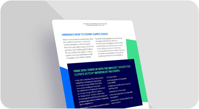 The Legacy and Sustainability plan for the Paris 2024 Olympic and Paralympic Games — 104 HARNESSING SPORT TO COMBAT CLIMATE CHANGE There is more to the environmental transformation Paris 2024 therefore pledges to harness the Games, than just technical solutions – it primarily the largest sporting event in the world, involves our behaviour and value system. to mobilise and encourage its ecosystem to take The Games unite 4 billion viewers, 13.5 million environmental action. We know we can count spectators, 15,000 athletes and 206 nations. on the unifying momentum of the Games The scale of the Games makes it a unique to encourage the entire Committee, the sporting opportunity to align stakeholders and get movement, our stakeholders and our partner a message across to billions of people. marketing companies to work alongside us. PARIS 2024 TEAMS UP WITH THE UNFCCC "SPORTS FOR CLIMATE ACTION" INITIATIVE AT THE COP24 At the 24th Conference of the Parties to the to five principles: United Nations Framework Convention 1. Promote greater environmental on Climate Change (COP24), Paris 2024 responsibility announced it would join forces with 2. Reduce the overall climate impact of the United Nations Framework Convention sporting events on Climate Change (UNFCCC) ‘Sports for Climate Action’ initiative, which aims 3. Educate for climate action to encourage the world of sport to reduce its 4. Promote sustainable and responsible greenhouse gas emissions related to organising consumption sports competitions. 5. Advocate for climate action through Participants in the initiative commit to adhere communication HARNESSING SPORT TO PROTECT BIODIVERSITY Similar to climate action, protecting biodiversity through developments rooted in the involves more than merely reducing environmental landscape while supplying or offsetting the environmental impacts ecosystem goods. This commitment has been of competition venues. Paris 2024 wants to make worked on since the bid stage alongside people aware of what biodiversity represents the move towards carbon neutrality. as a whole. The organisation of the Games must spearhead clear, comprehensive civic Paris 2024 therefore aims to: information and environmental regeneration. • help promote respect for biodiversity The fact that sport and biodiversity both contribute to people’s wellbeing makes this in professional and amateur sport; a particularly relevant commitment – they • harness sport, particularly outdoor sports, improve health and wellbeing and can bolster to mobilise people to protect and regenerate the resilience of regions and urban areas biodiversity.
