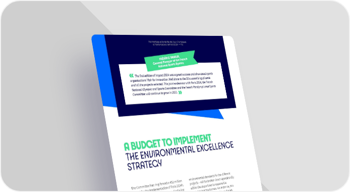 The LPlaen Hgaécry aitange ed Sut Dstuarinaabbiliitlié dty pels Jan feuox Or thle Pymapriiqs 2ue0s 2 4 Oet Plymapraic alymnpd Piquaeras dlyme Ppaic Gris 2a0m2e4 s — 1— 11100 FRÉDÉRIC SANAUR, ench r er of the F al Manag Gener ency National Sports Ag The first edition of Impact 2024 was a great success and showcased sports organisations’ flair for innovation. Well done to the 55 successful applicants and all the projects selected. This joint endeavour with Paris 2024, the French National Olympic and Sports Committee and the French Paralympic and Sports Committee will continue to grow in 2021. A BUDGET TO IMPLEMENT THE ENVIRONMENTAL EXCELLENCE STRATEGY The Committee has ring-fenced a €52 million environmental standards for the different budget for the implementation of Paris 2024’s projects – will be broken down operationally Environmental Excellence strategy, displaying within the departments responsible its political will to host sustainable, for delivering the Games. For instance, this environmentally friendly Games. involves the use of responsible materials for temporary infrastructure and venues and obligations to reuse and recycle materials, The breakdown of the budget is as follows: the use of temporary power generated by • €15 million to ensure the Games are fully renewable energy sources, the establishment carbon neutral by offsetting any residual of purchasing criteria for sustainable food carbon emissions from the event; (products awarded labels, short supply chains, • €13 million to implement innovative agroecological practices, low-carbon environmental excellence policies (outlined and plant-based options, etc.), extra recycling in parts 1 and 2 of the present document); requirements in terms of waste management, standards imposed on logistics operations, • €24 million to help Paris 2024’s departments as well as the use of clean vehicles. It also fulfil the various environmental excellence includes audits of compliance with objectives. Some of the costs – relating to the the responsible purchasing strategy and effective implementation of the responsible the integration of environmental considerations purchasing strategy and stringent (in liaison with the purchasing department).